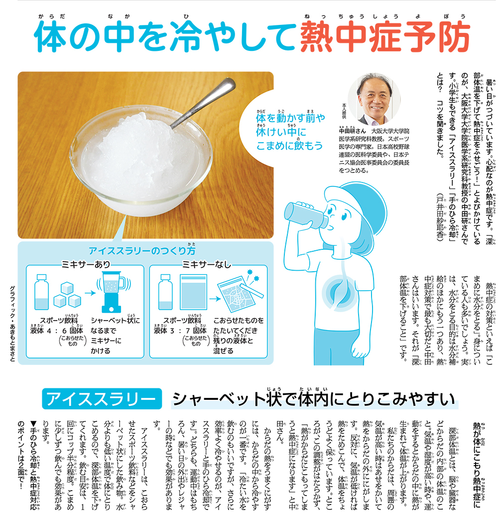 体の中を冷やして熱中症予防(朝日小学生新聞 2025年7月17日付)