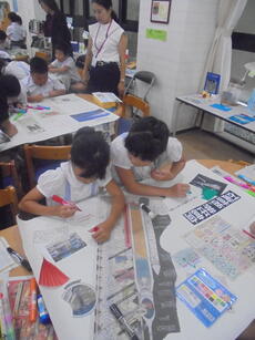 戦後80年、ヒロシマと東京大空襲の記事を選んだ班は講師の私に尋ね、神戸空襲と沖縄戦の犠牲者数(それぞれ約8千人、20万人以上)も書き込み、「今はどうか」とロシアによるウクライナ侵攻に触れた。「新聞を手にするのは初めて」という子どもも多かったが、ワイワイと授業時間の90分間いっぱいまで取り組んだ。