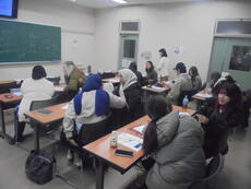 同大学の辻本桜子特任講師が留学生に日本語授業の一環として指導している。17人は韓国、台湾、キルギス、クウェート、インドネシア、インド、モロッコ、ガーナ、ドイツ、マラウイから2024年9月と25年9月に来日した交換留学生や教員研修留学生ら。文法、漢字、会話などの日本語や日本文化、日本事情を学ぶ科目などを履修している。