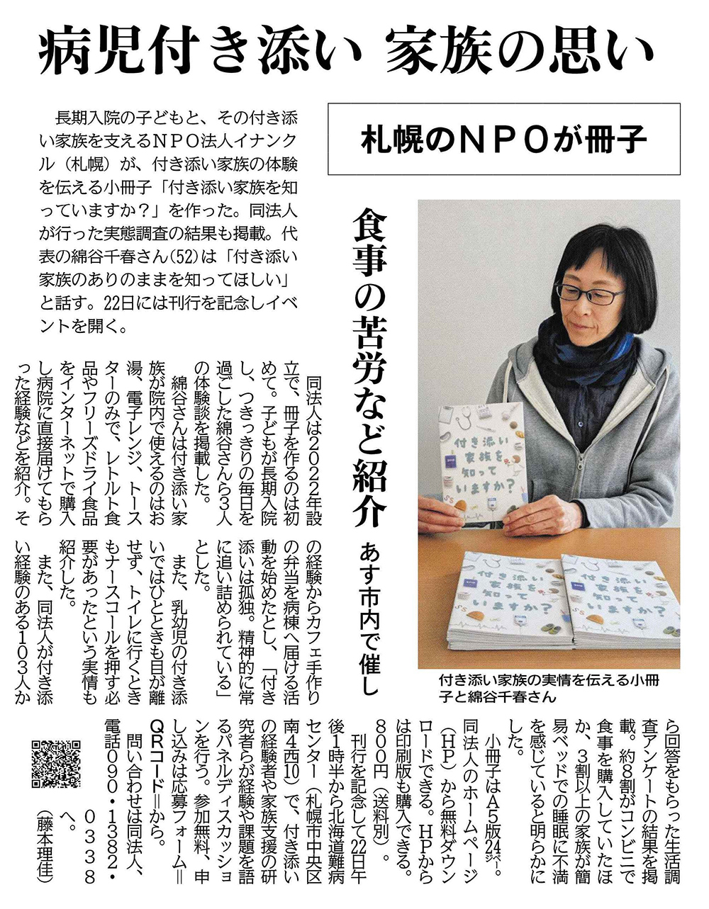 ②病児付き添い 家族の思い(北海道新聞 2025年2月21日付朝刊)