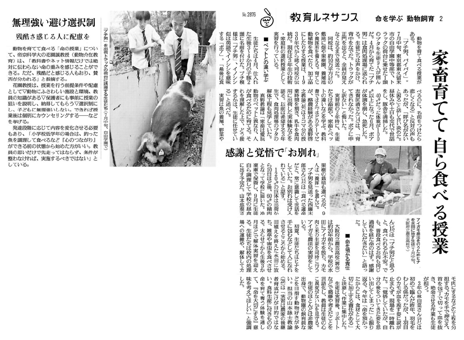 命を学ぶ 動物飼育2 家畜育てて自ら食べる授業(読売新聞 2025年8月27日付朝刊)