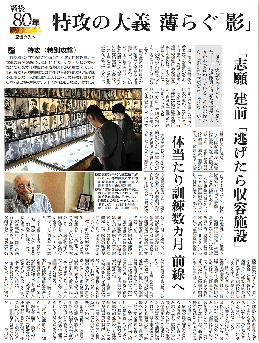 戦後80年記憶の先へ 特攻の大義 薄らぐ「影」(朝日新聞 2025年8月15日付朝刊)