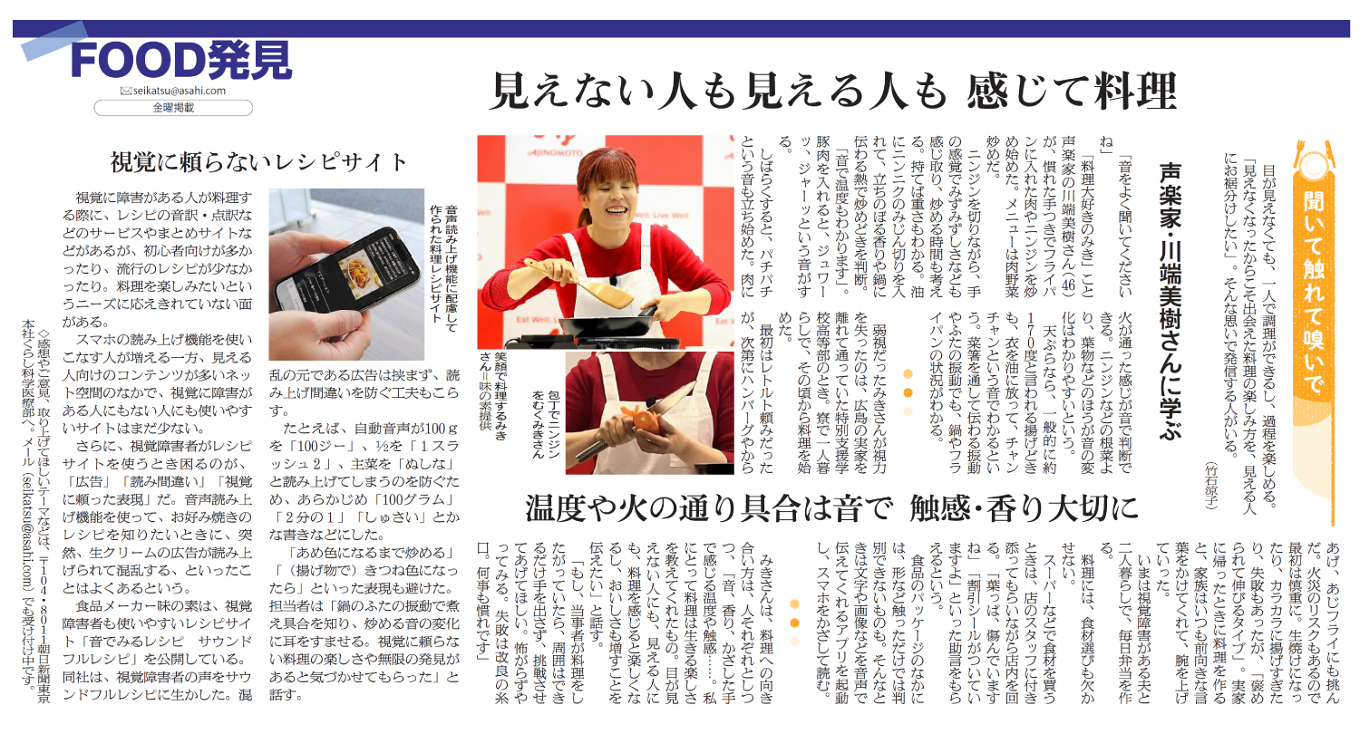 見えない人も見える人も 感じて料理(朝日新聞 2025年7月4日付朝刊)