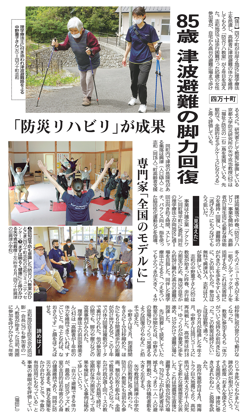 85歳 津波避難の脚力回復(高知新聞 2025年6月25日付朝刊)