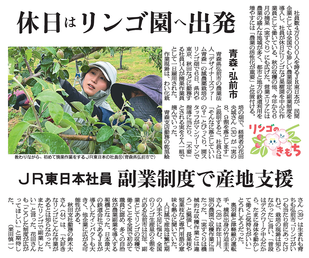 休日はリンゴ園へ出発 JR東日本社員 副業制度で産地支援(日本農業新聞 2025年6月12日付朝刊)