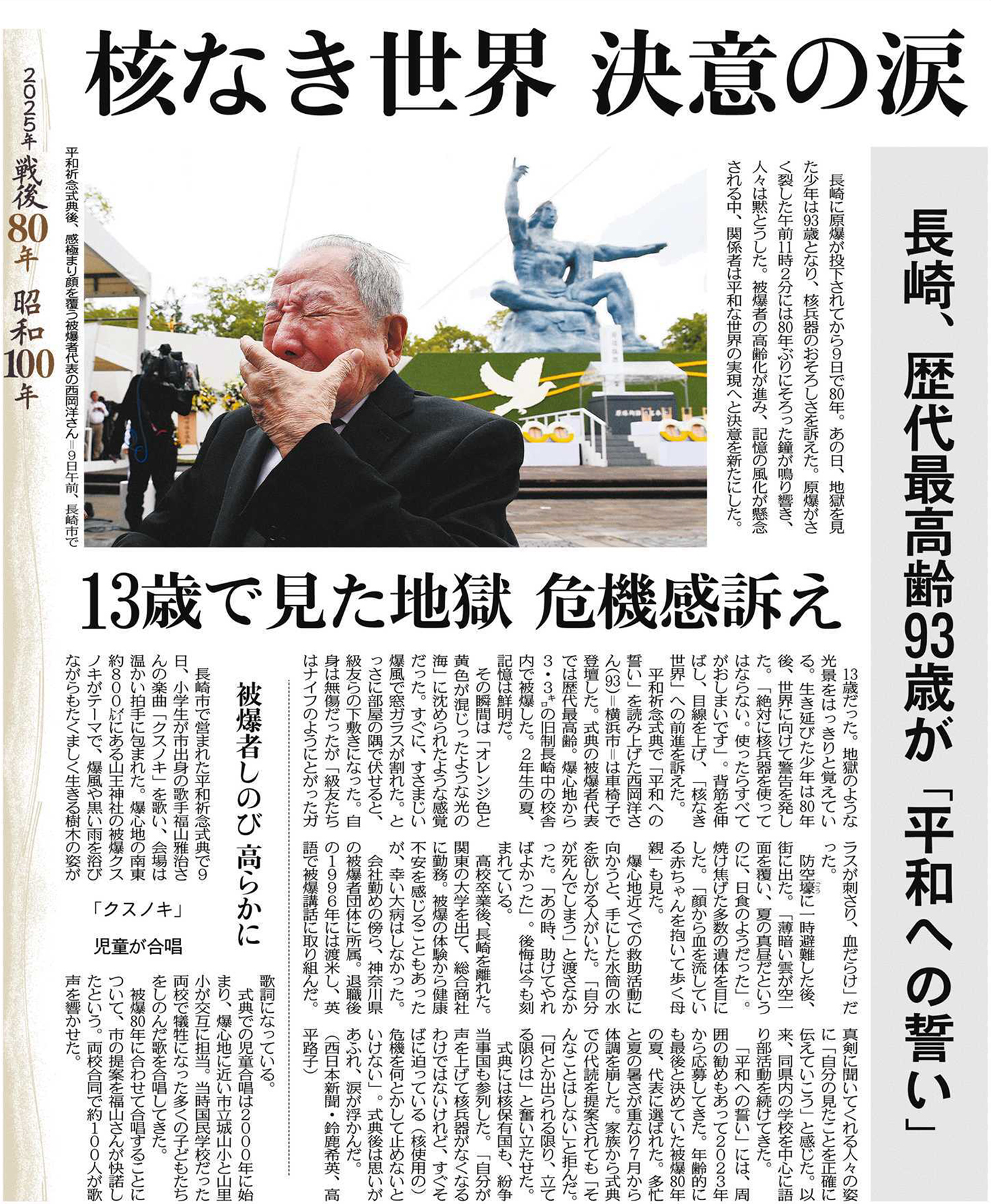 核なき世界 決意の涙 長崎、歴代最高齢93歳が「平和への誓い」(中日新聞 2025年8月10日付朝刊)